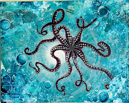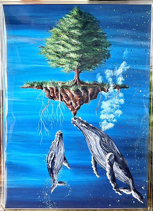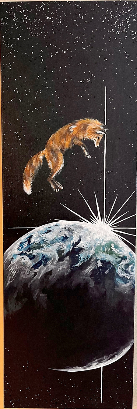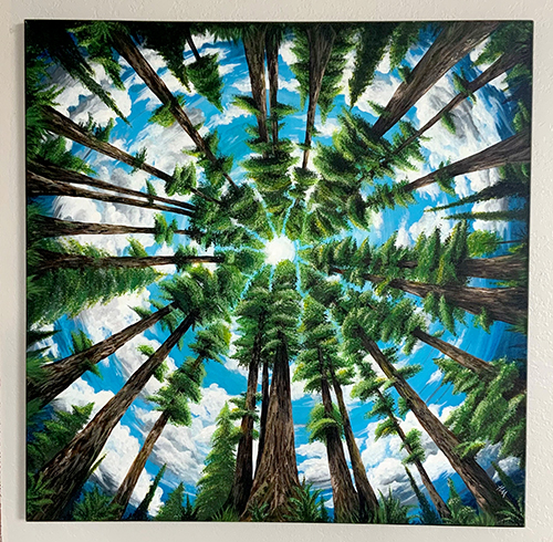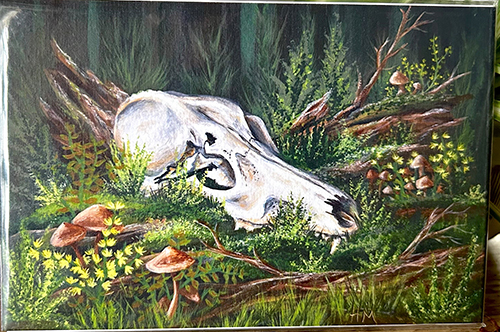 Heather’s work is predominantly acrylic on canvas, but she has recently been experimenting with mixed media as well as using objects of nature, such as tree bark & conk mushrooms.  Her passion for nature and wildlife shines through most of her pieces.  Heather’s style is mostly impressionistic-realism, although she likes to dabble in the world of fantasy and surrealism as well.  She especially loves to emphasize lighting and contrast!