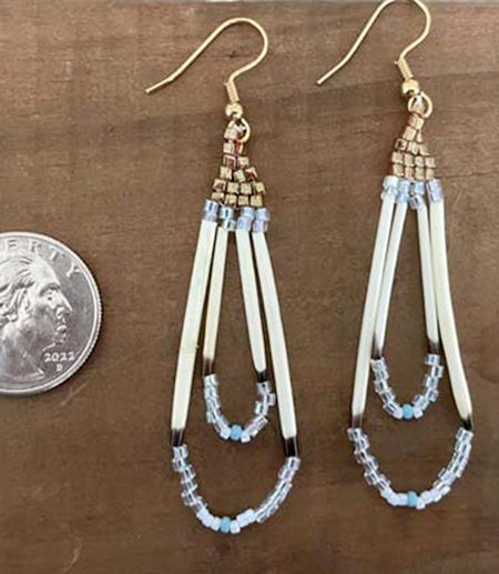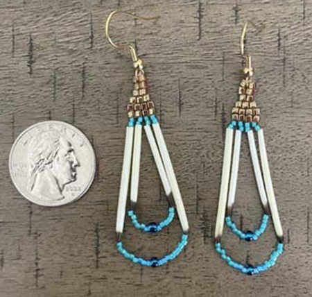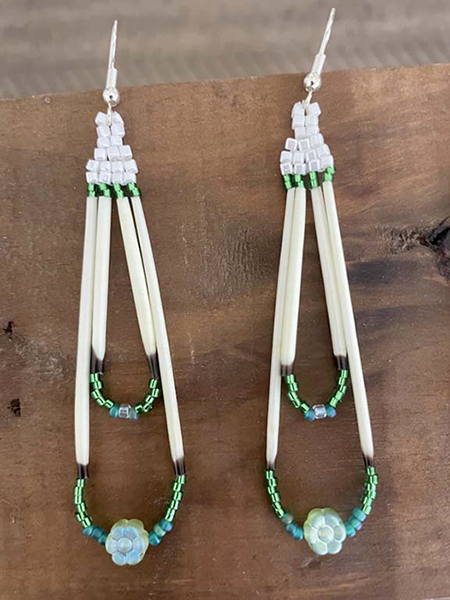 I learned beading from my older sister.  I like to use porcupine quills as they give a very unique but natural look to my earrings.  I enjoy choosing the color combinations for each set.